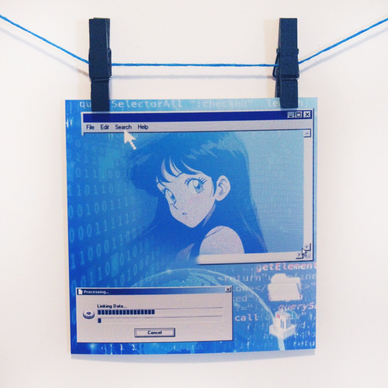 Link data with my cybercore mini art print. It's 4" x 4" and has a nice vibrant blue to match your aesthetic.