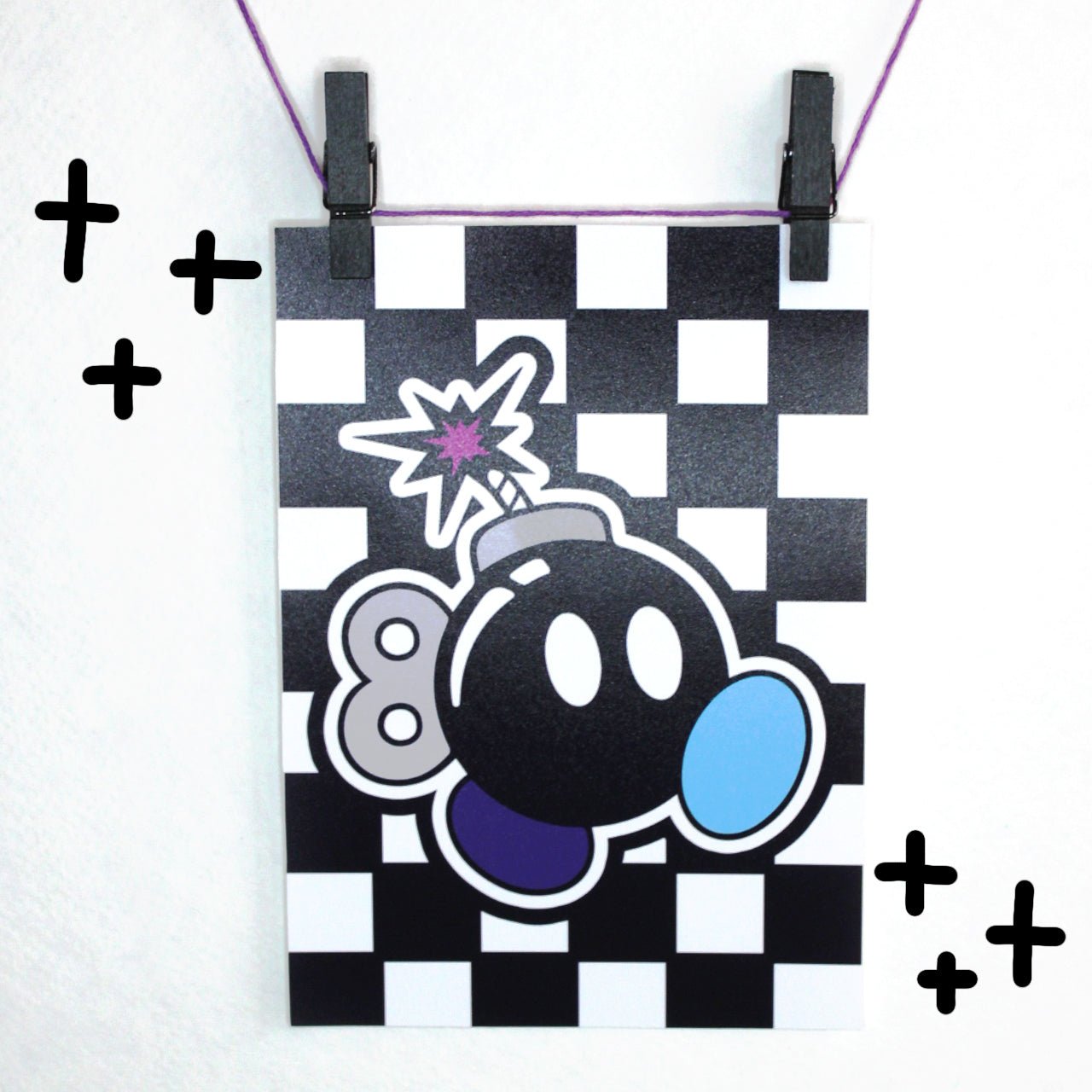 With a dash of vibrant colors and bold black outline, this checkered mini print is perfect for gamers and pop art enthusiasts alike. Measuring 4" by 5" 1/2 inches in size, it's the perfect way to inject some fun and personality into any space.