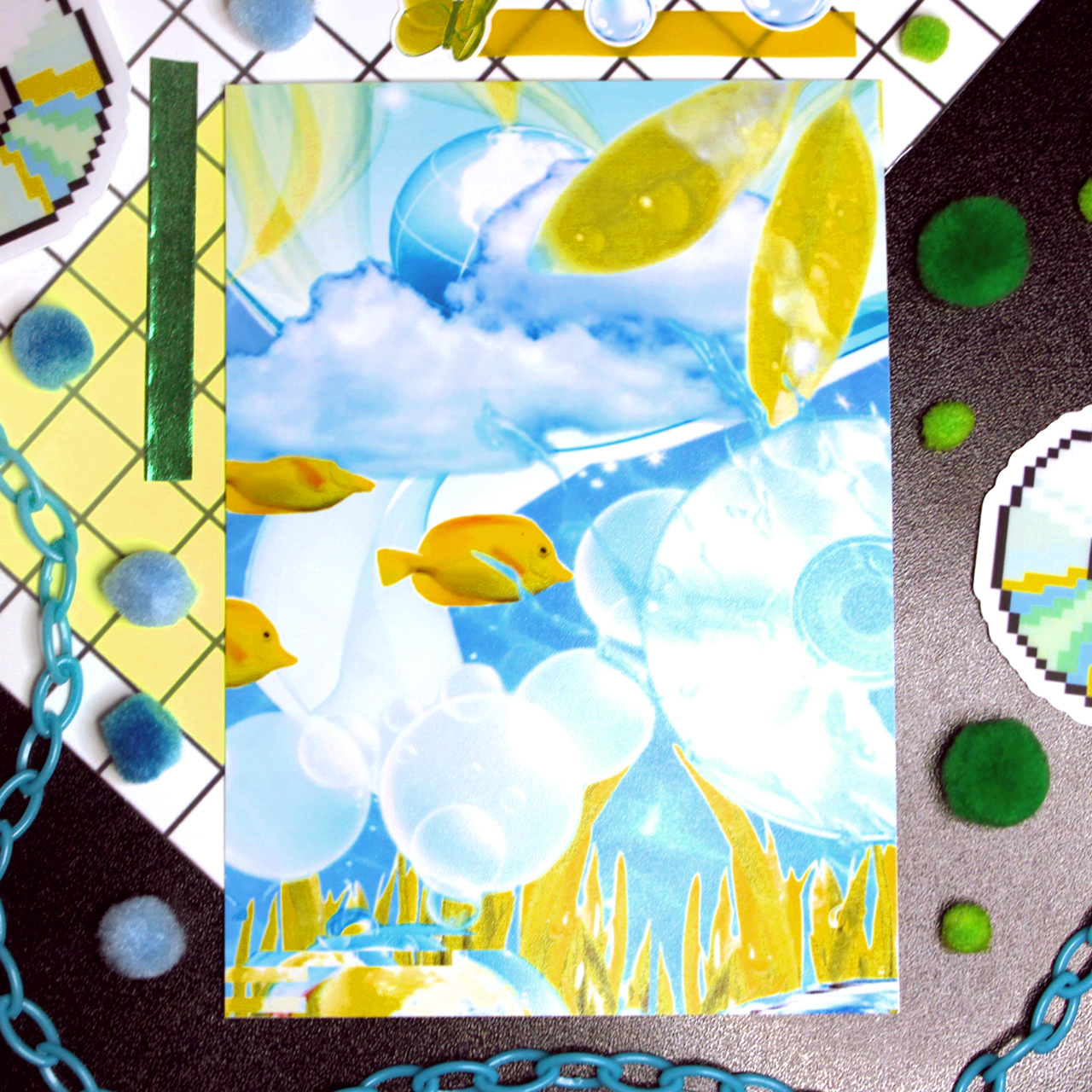 Add some frutiger aero aesthetics to your space with my small 4" x 5" 1/2 print. Comes with a protective sleeve and a freebie :D