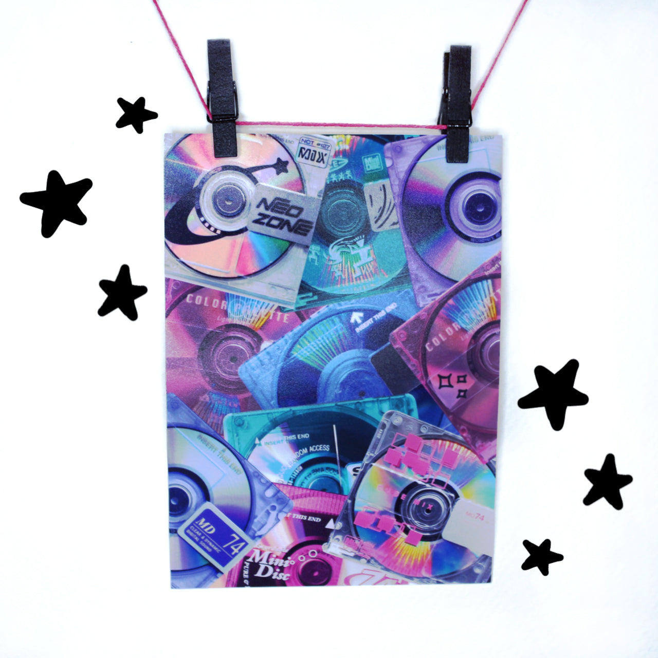 Step back in time to the vibrant era of Y2K with my mini disk postcard-sized art print. It's perfect for adding a pop of personality to any space whether you're a fan of all things Y2K or simply love bold and colorful art.